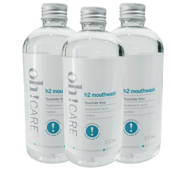 NEW! h2 Mouthwash: Fluoride Free w/ Hyaluronic Acid Triple Pack 3x330ml
